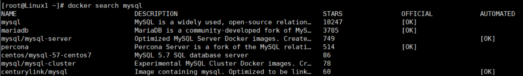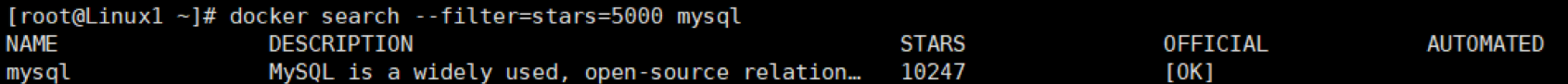 # 以下四种方式均可 docker search --filter=stars=5000 mysql docker search --filter stars=5000 mysql docker search -f=stars=5000 mysql docker search -f stars=5000 mysql
