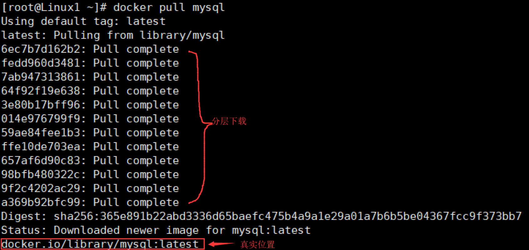 docker pull mysql # 下载镜像(这里如果不指定TAG,默认就是lastest最新版)