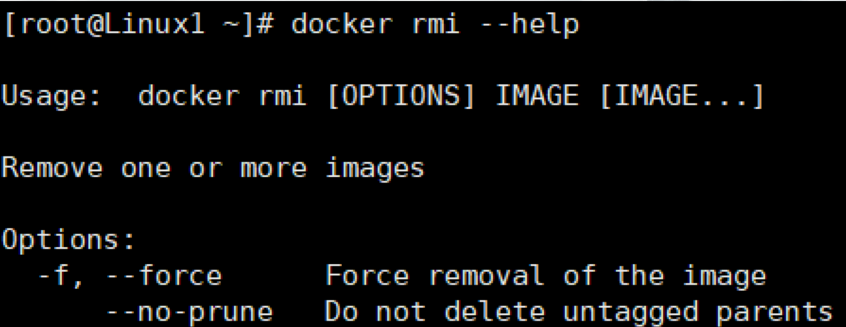 首先使用docker rmi --help