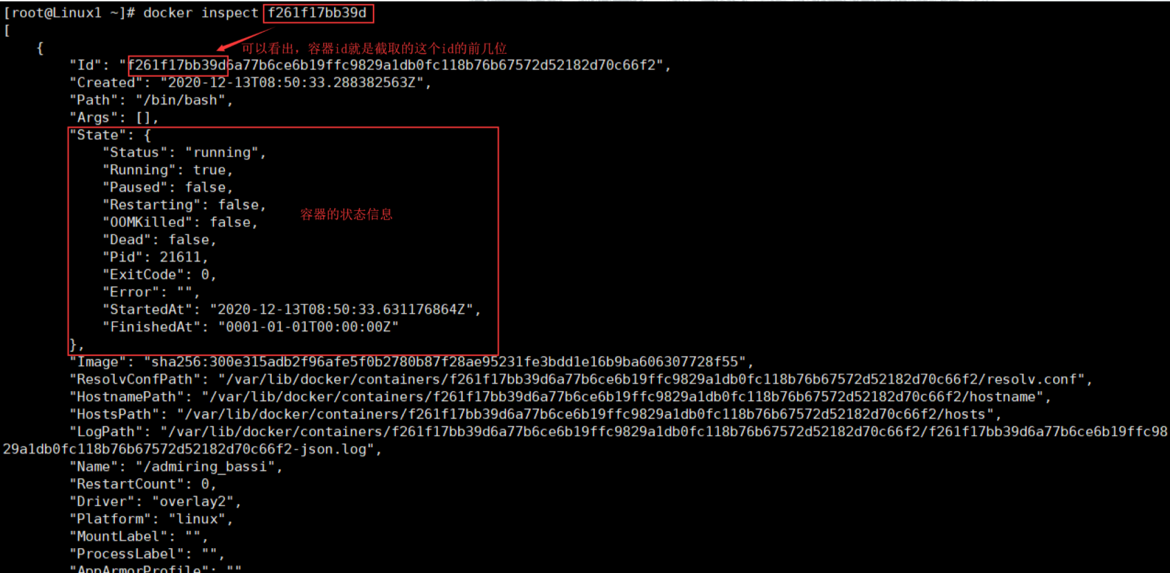 docker inspect 容器id