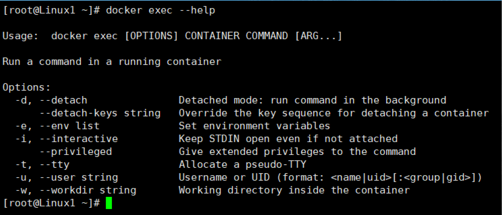-d # 让命令在后台执行 -e # 设置环境变量 -it # 使用交互模式进入 -u -w # 分别设置命令运行的用户和work directory。也就是如果要改变用户或者工作目录,就是用-u或-w
