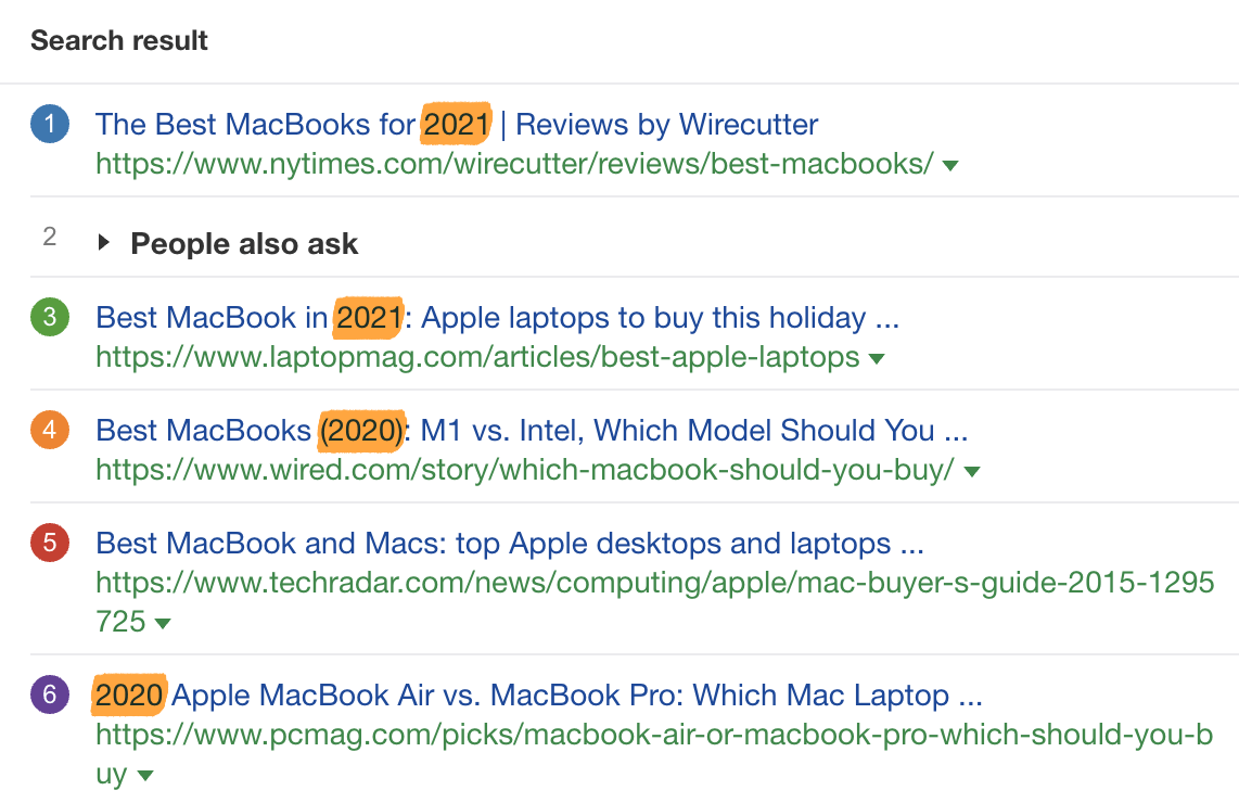 “最好的macbook”在Ahrefs的关键词分析中的美国排名。