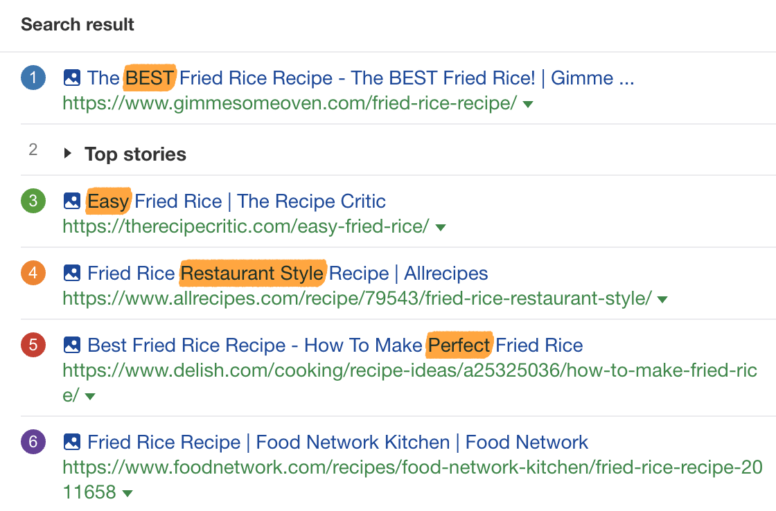 在这种情况下,谁知道最完美的内容角度。但你只要给那些寻找“如何做炒饭”的人,一个你认为最有吸引力和最有用角度的内容即可。