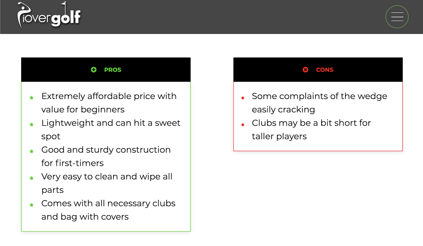 “最佳高尔夫套装”的第一名列出了优点和缺点… ..。