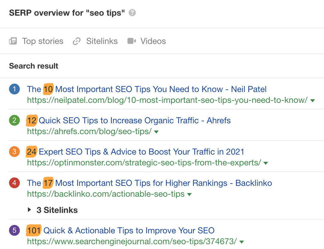 只是要记住采取这种方法时要小心谨慎。如果你的关键词是“最佳高尔夫球杆组合”,而且所有排名靠前的页面都提到了你知道的一个很糟糕的东西,你不应该仅仅因为其他人都这么做了就把它包括进去。