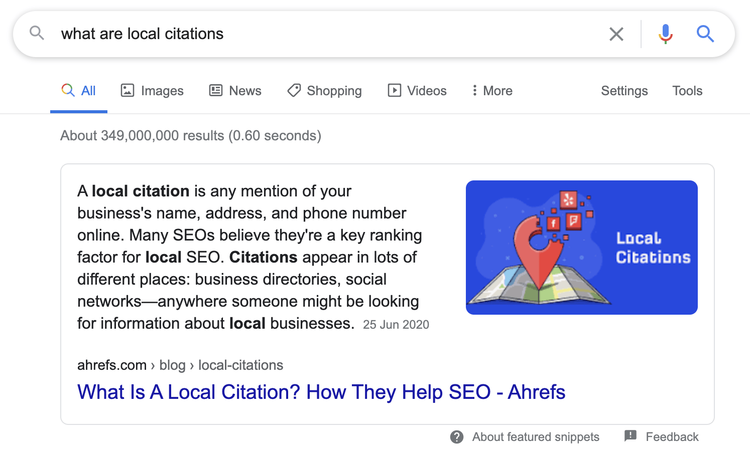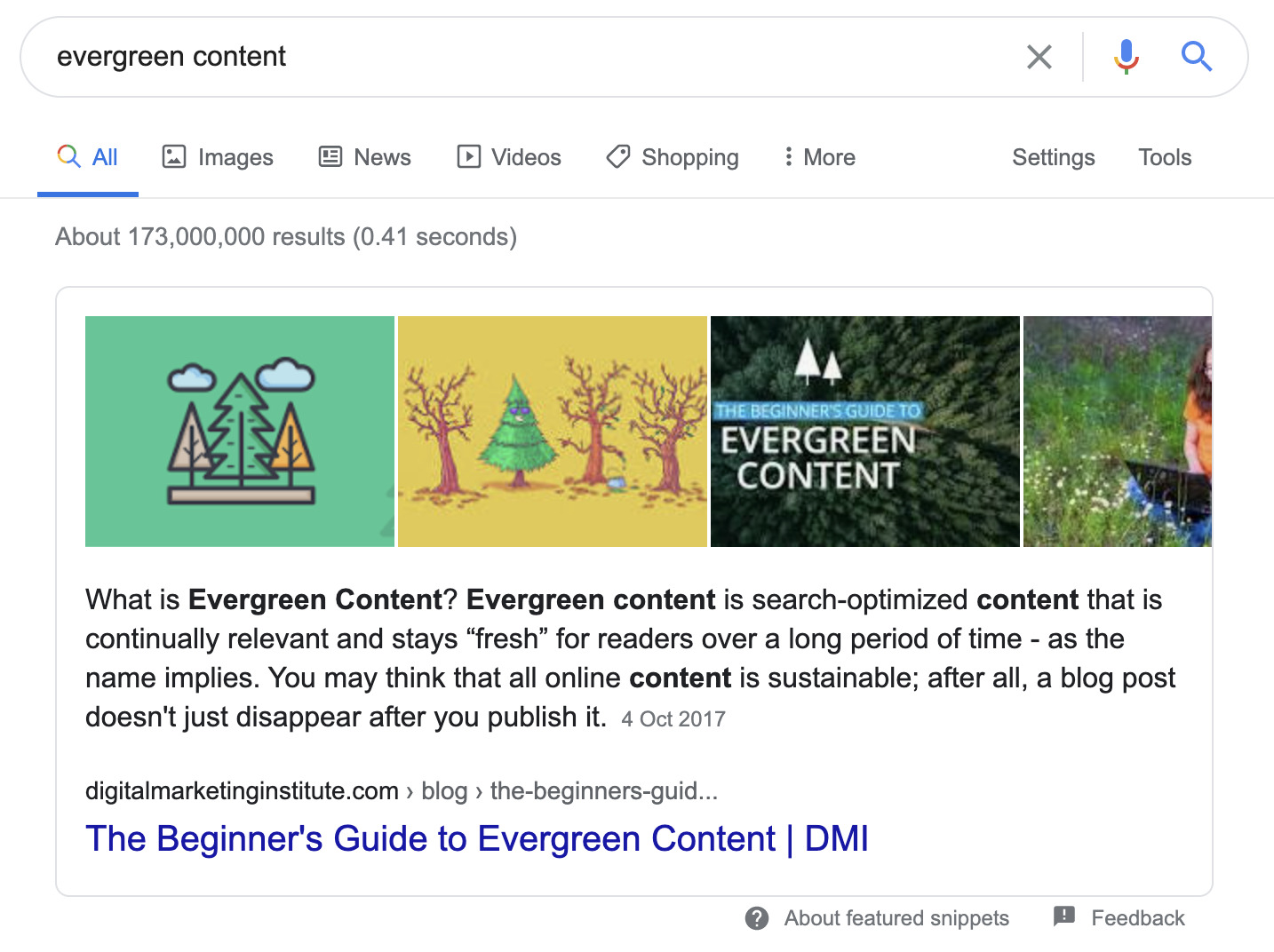 如果我们检查 SERP,我们会看到当前精选摘要是一个简短段落,其中包含术语的定义。