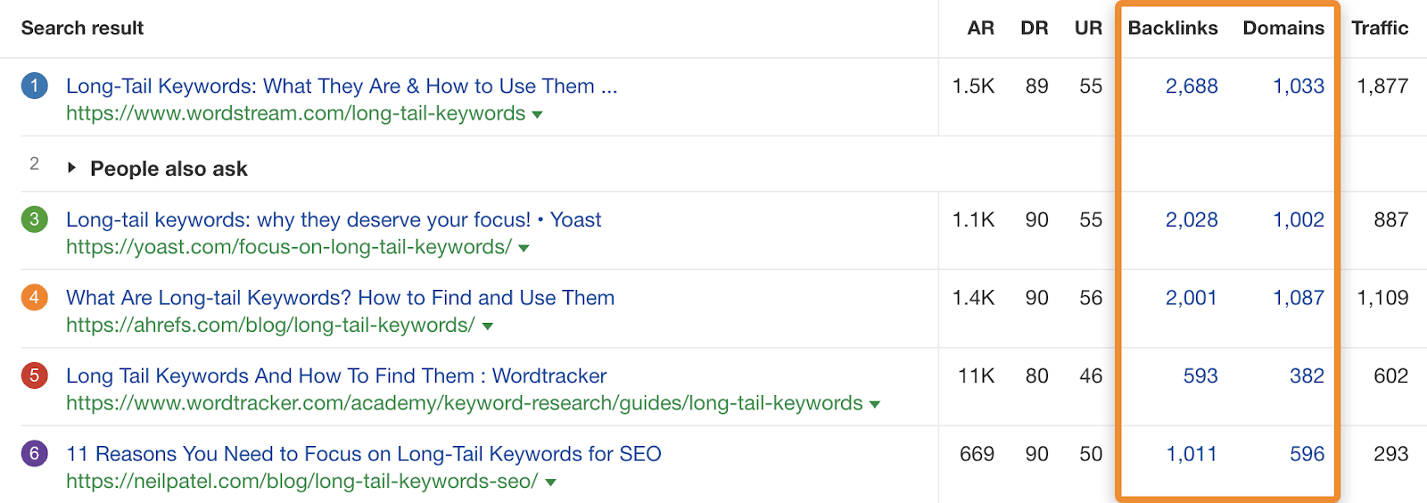 例如,我们的一篇文章的主要目标关键字是“长尾关键字”如果我们把这个关键词插入 Ahrefs 的关键词分析,我们会看到一些有大量反向链接的类似帖子。