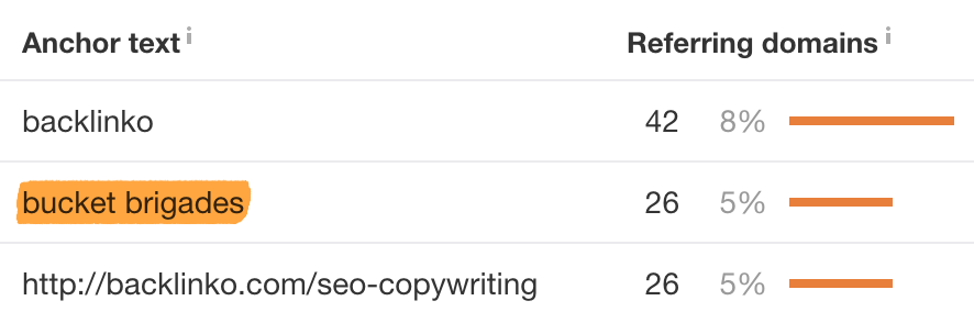 如果我们换个话题,查看锚文本的“ 搜索引擎文案”排名首页的网页,我们会看到许多人因为两个独特的概念而产生链接。