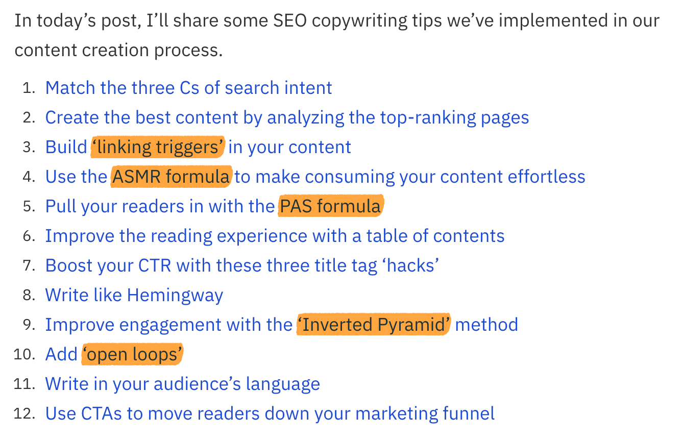 在我们的文章中包含这些相同的概念可能没有什么意义,但是我们可以包含一些我们自己的独特想法来增加链接的可能性。这就是我们写 SEO文案时所做的