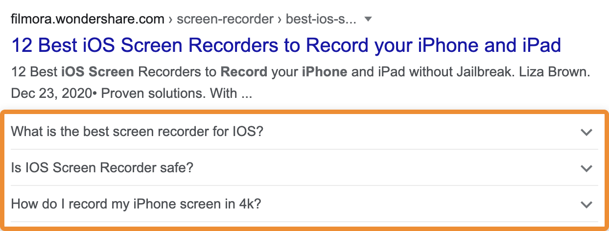 例如,在 SERP中有一个页面使用了 FAQ标记: