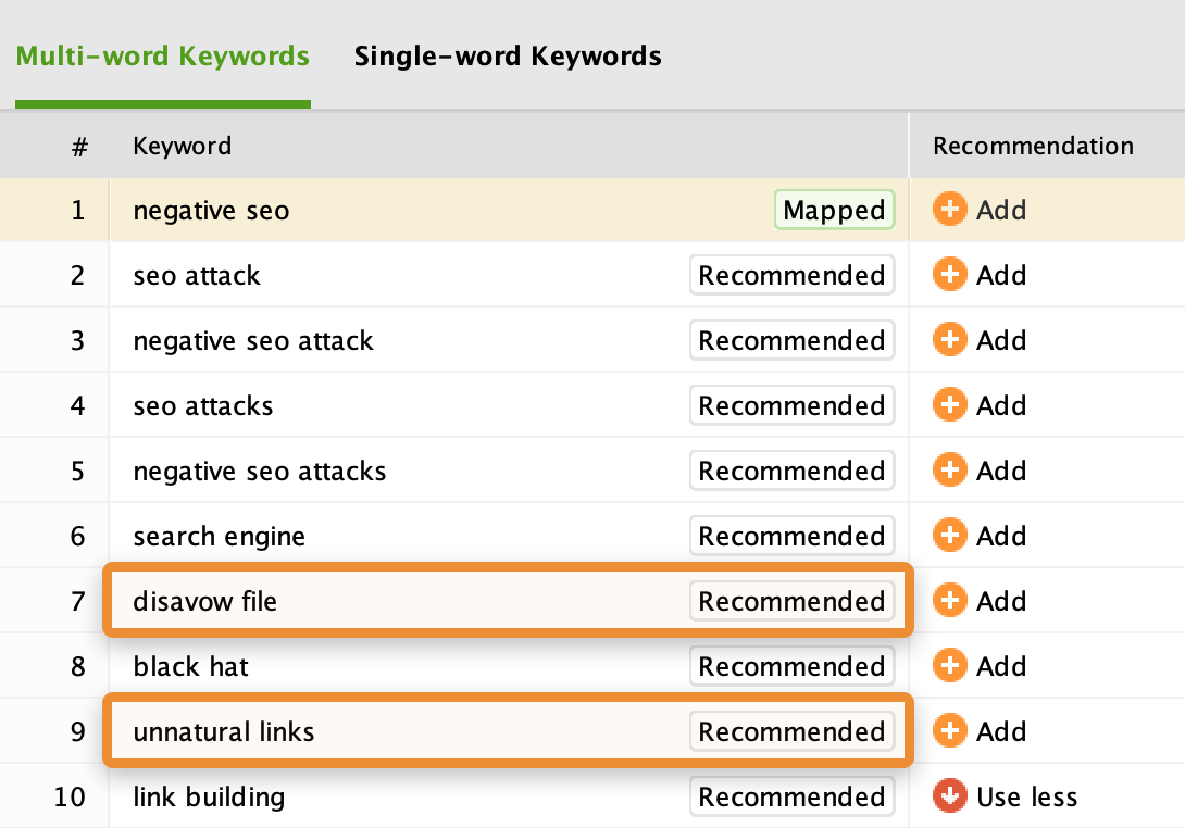 例如,如果我们这样做我们的文章负面的搜索引擎优化,我们看到竞争的网页谈论的东西,如否认的文件和不自然的链接。
